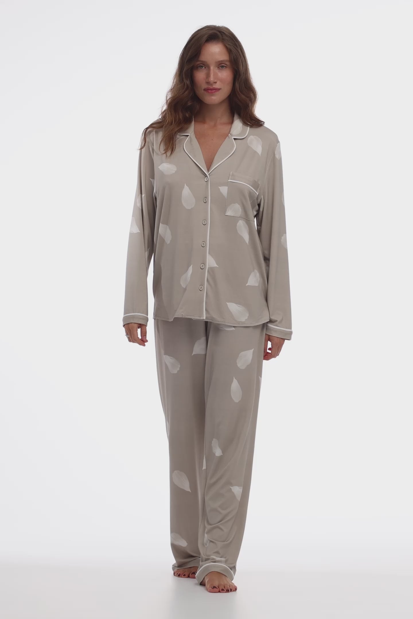 Bamboo Long Pyjama Set in Silver Birch Petals