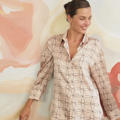 Neo Geo Silk shirt is designed from premium 100% washable Mulberry Silk. It delivers a smooth touch to the skin and features a relaxed straight cut with a neat collar and concealed buttons, adding a polished look and longevity.