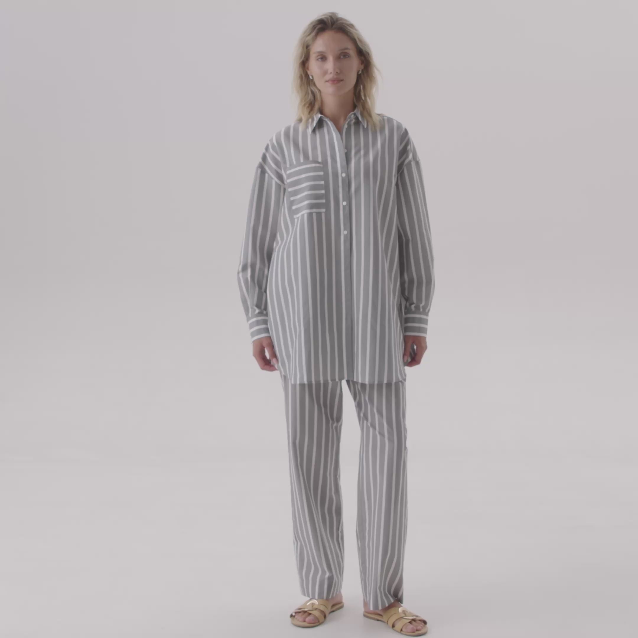 The Strapped Cotton unisex striped pants are crafted from soft, lightweight cotton-silk blend, featuring a relaxed fit and an effortless, easygoing shape.